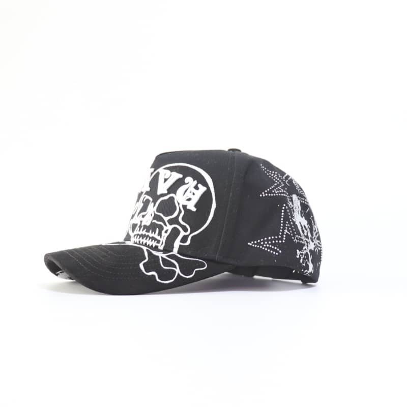 Designed in classic black, this cap delivers a sleek and versatile look that pairs easily with any outfit. The deep black background also enhances the sparkle of rhinestones and highlights the detailed embroidery.